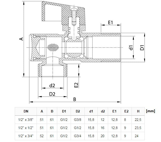 1/2x1/2 palcový vodní izolační kulový ventil Chrome pro vodovodní kohoutky