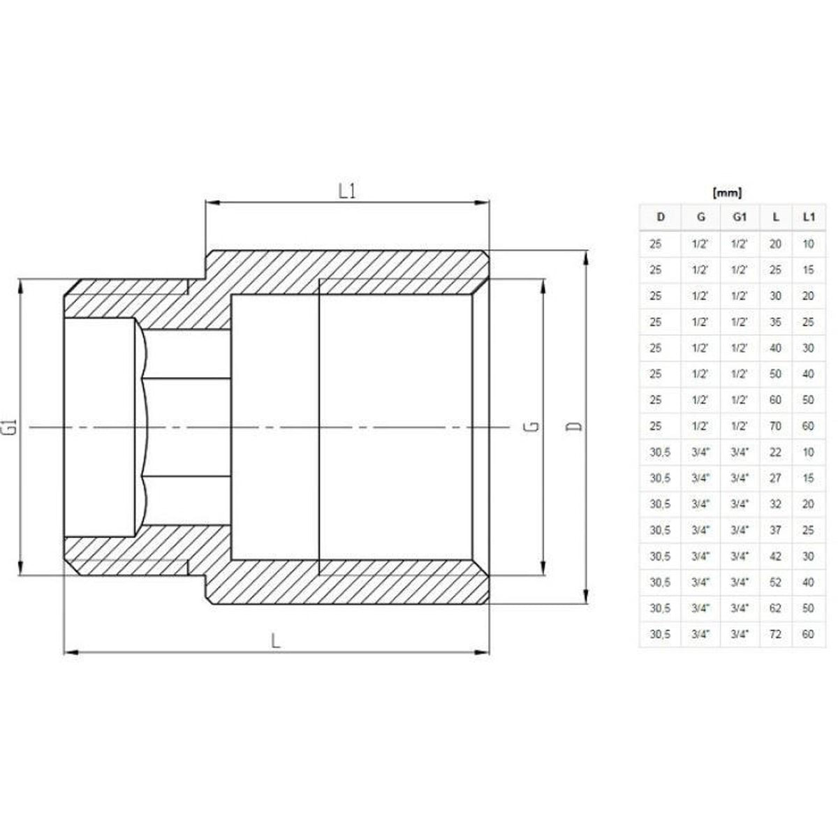 Verlängerungsmuffe mit 1/2-Gewinde, damit Sie jede Armatur in der Höhe verlängern können, so dass mehr Platz für alle Abstandsprobleme bleibt, gleiches Gewinde für Innen- und Außenseite. Länge: 15 mm (poliertes Teil) Gewindegröße: 1/2" IG x AG Material: Messing verchromt Maximaler Druck: 1,0 mpa (10 bar) Maximale Temperatur: + 100c