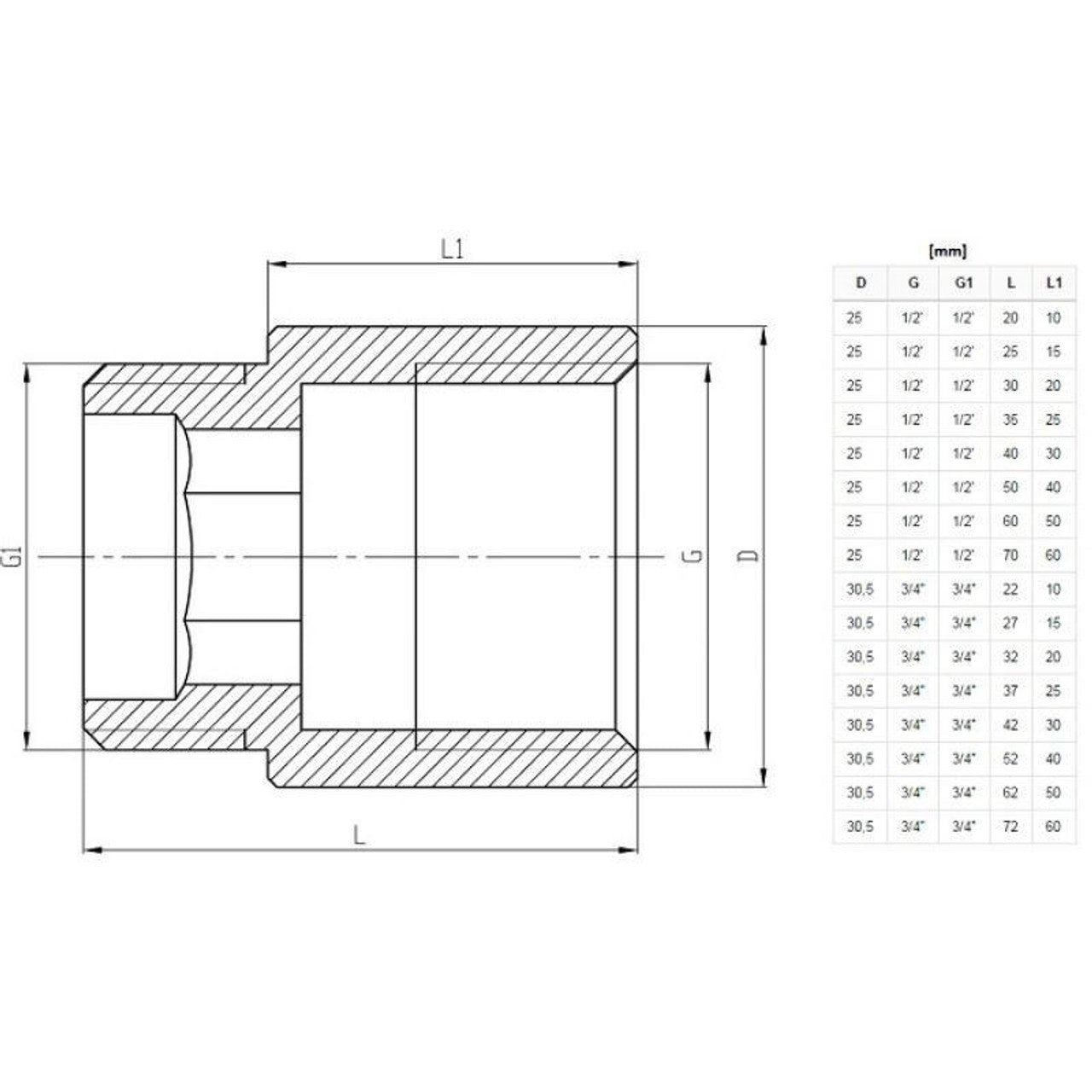Verlängerungsmuffe mit 1/2-Gewinde, damit Sie jede Armatur in der Höhe verlängern können, so dass mehr Platz für alle Abstandsprobleme bleibt, gleiches Gewinde für Innen- und Außenseite. Länge: 25 mm (poliertes Teil) Gewindegröße: 1/2" IG x AG Material: Messing verchromt Maximaler Druck: 1,0 mpa (10 bar) Maximale Temperatur: + 100c