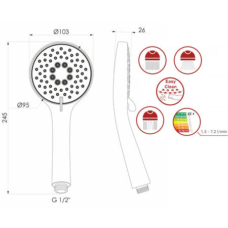 Handbrause ASTRA 3-Funktion Chrom Hand Dusche