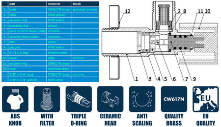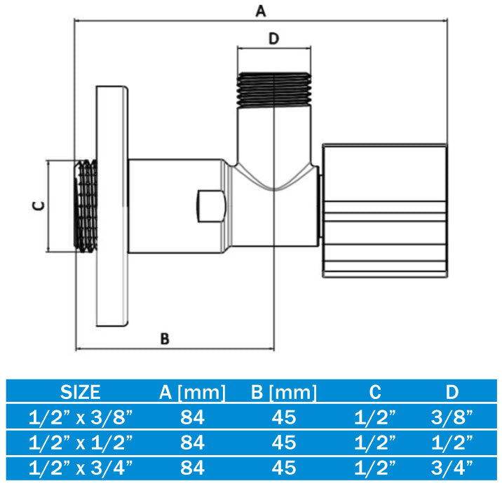 Vanne à angle parfait pour installations d'eau: Taille: 1/2" x 1/2";