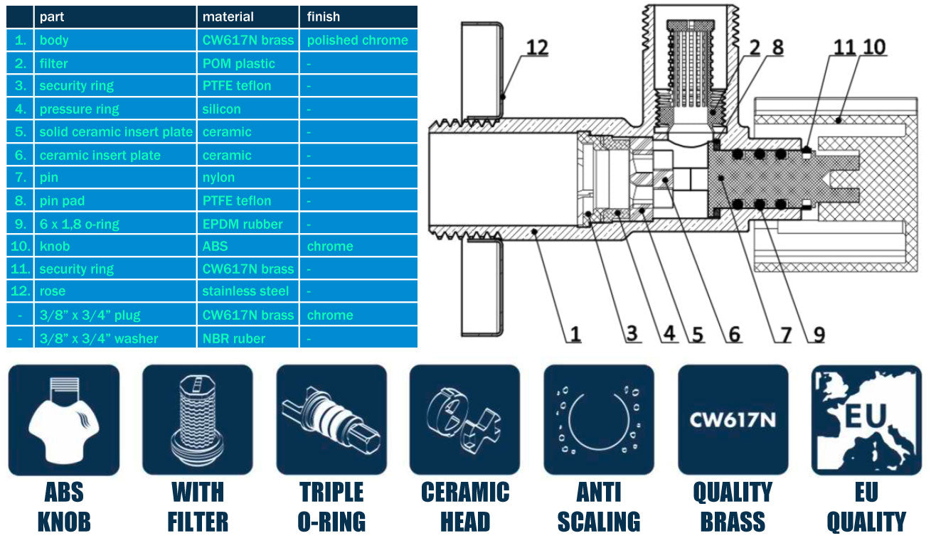 Corps en laiton chromé;
