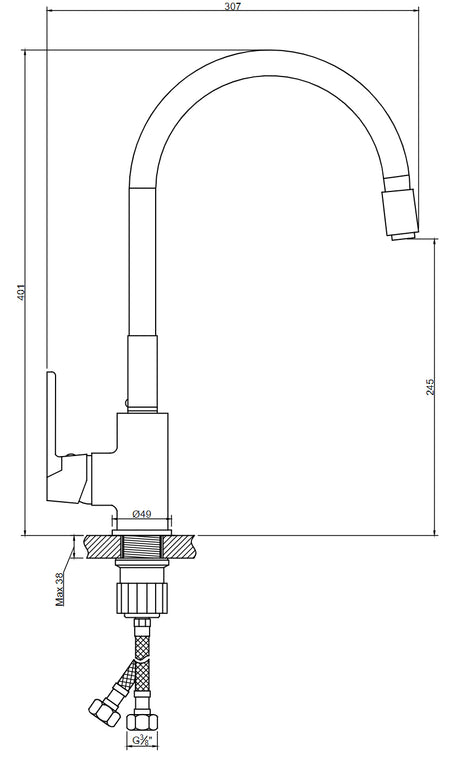- Aérateur à économie d'eau et 2 tuyaux d'alimentation de 45cm.