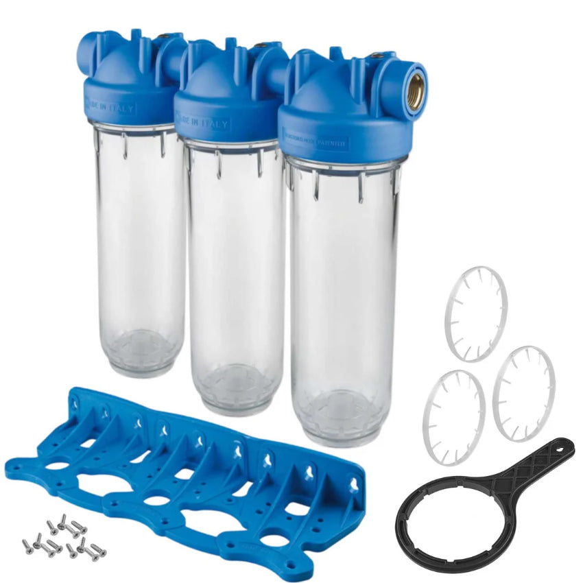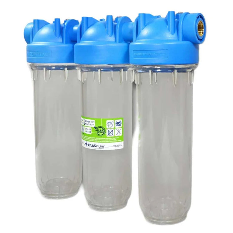 Wysokiej jakości przezroczysta obudowa filtra wody wyprodukowana we Włoszech przez firmę Atlas Filtri. Może pomieścić standardowe wkłady 10". Produkt zawiera uchwyt ścienny i klucz otwierający, co zapewnia bezpieczne zamocowanie obudowy filtra w dowolnym miejscu. Dzięki trwałej konstrukcji, przyjaznym dla użytkownika funkcjom i kompatybilności z szeroką gamą systemów ten zestaw obudów zapewnia niezawodną i wydajną filtrację wody w domu lub firmie.