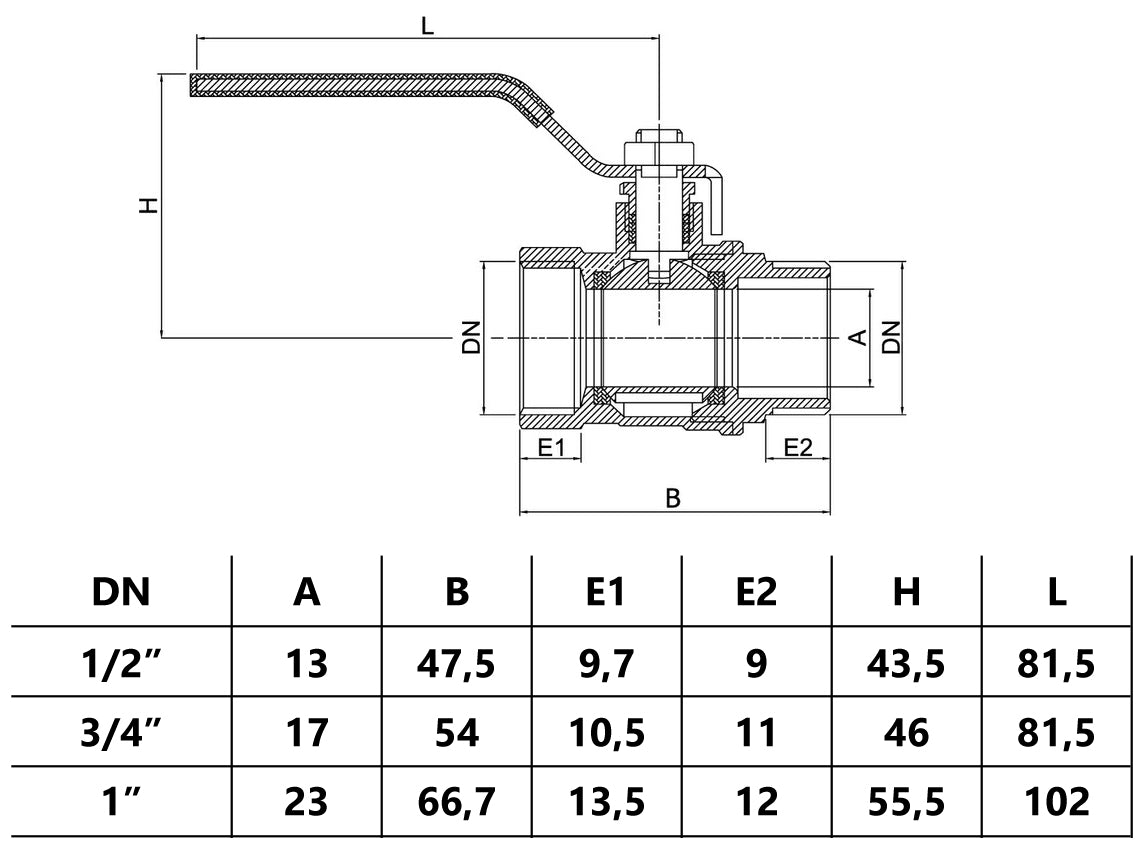 1/2 Inch Inline Water Ball Valve Quarter Turn Steel Handle DN15 Female x Male Thread