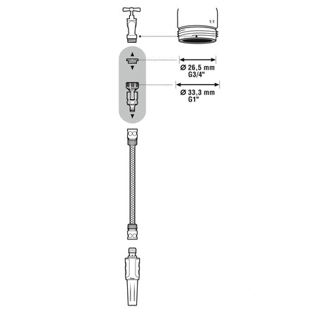 • The tap connector is suited for taps with 1" and 3/4" thread