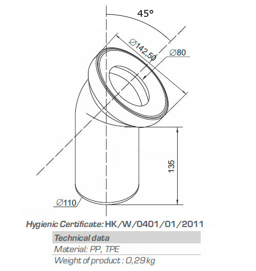 110mm 45 Deg Elbow Toilet Waste Pan Connector Soil Water Pipe White