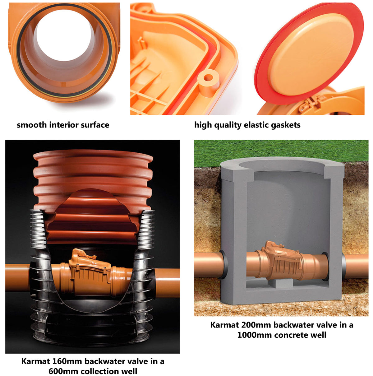 KARMAT Backwater Valves (non-return valves) effectively secure any rooms located on the lower floors against flooding caused by back flow of storm water and sewage. Back flow may be caused by intense rains, thaw or floods. Use of anti-flooding devices for rooms located on the lower floors is required by obligatory regulations related to technical conditions that are to be satisfied by building codes
