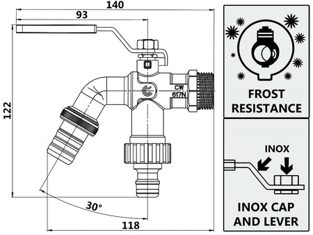 - Lever and cap made of inox;