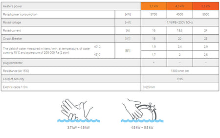 A convenient way to heat water. By mounting close to water intake point, minimalizes waiting time for hot water. The water does not lose heat by flowing through the pipes. Also relatively decreases electricity consumption. Heating water takes place only after turning the tap on. You decide when and how much water you wish to heat up!