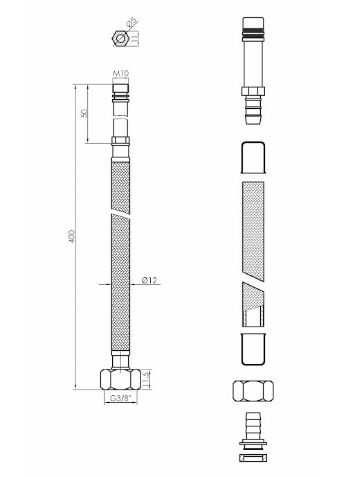Black nylon braided flexible hoses are used for the connections between the water supply and sanitary fittings like water taps. Perfect for installations with faucet of all designs especially for those that will be part of black colour bathroom finishings. Ideal for kitchen/basin mixer monobloc taps connection to the water source where flexibility of hose pipe is required.