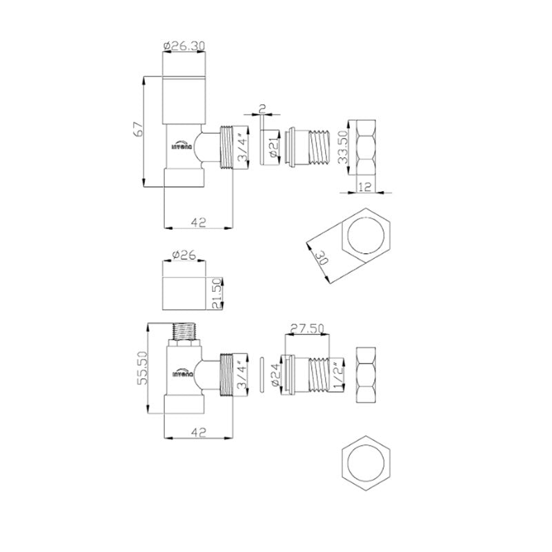 - Angled outlet valve 1/2" Inch BSP.