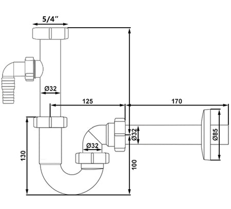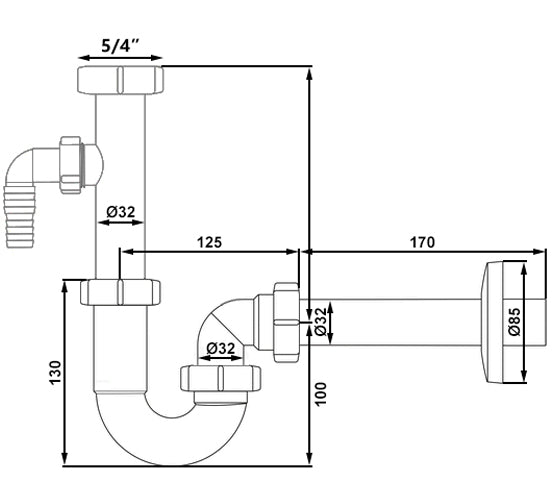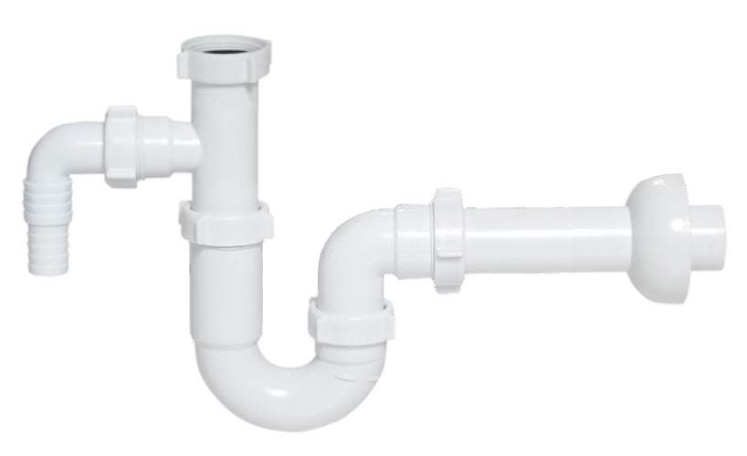 Basic model of P-trap used in bathroom basins. Easy mounting and lighweight that helps fast replacing old traps. Washing machine/dishwasher input that can be plugged (blanking part included in set) when not used.