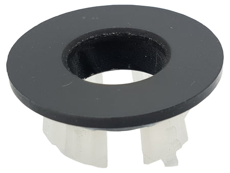 Basin/sink overflow black colour cover. Front of the insert is made from high quality brass with a hard wearing black finish. The clips are made from plastic for easy installation. Made to fit standard 19mm-23mm (7/8") overflow holes and designed to simply be pushed gently in to the hole and click in to place. No tools are required, just clips in.When bathroom basins are manufactured the overflow is left as an open, often roughly cast drain hole and however clean you manage to get it, it can look bare, unfinished and unattractive.