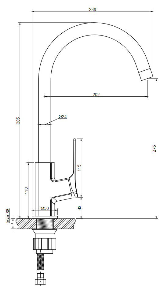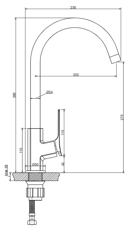- Type: single lever standing kitchen sink tap;