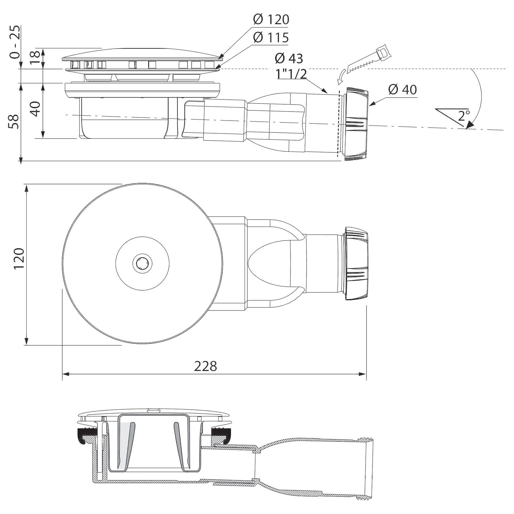 Chrome Dome DN40 Slim Shower Drain Waste Trap Super Flat Cup-Connection 24l/min