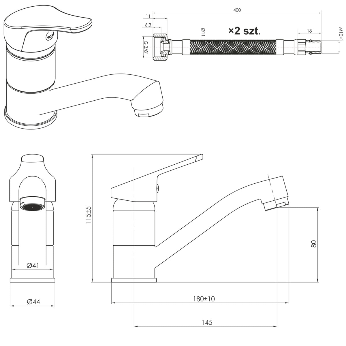 - 2x 40cm inlet hose 3/8" x M10.