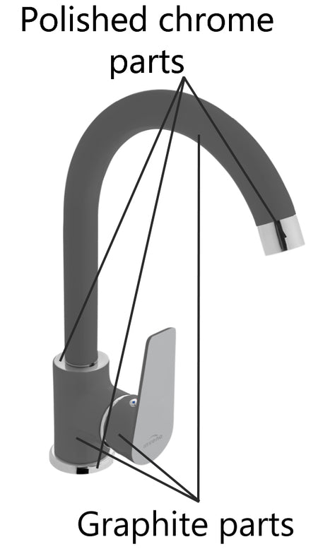 Kitchen tap graphite / chrome series Invena Dokos is an innovative combination of colours. It is a great proposition for functional kitchens in a modern style. The subtle color gameplay means that the battery will surely be eye-catching, acting as a functional decoration and emphasizing the modern character of the interior.