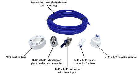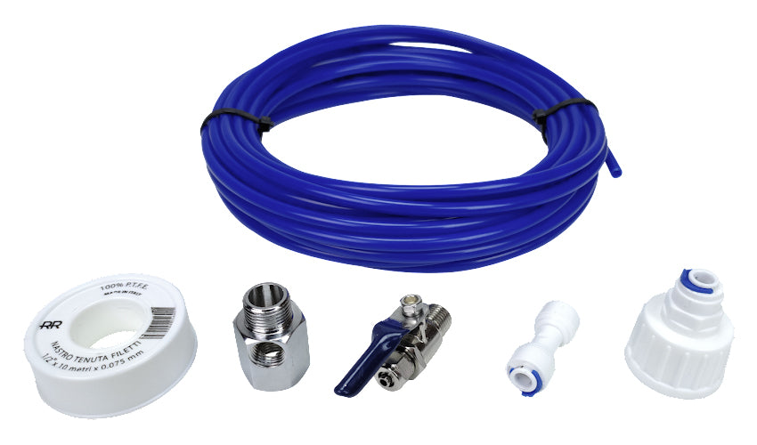 A complete and universal set for connecting water to household appliances such as refrigerators, ice makers and household filters. The set fits all equipment with a connection to the water supply.