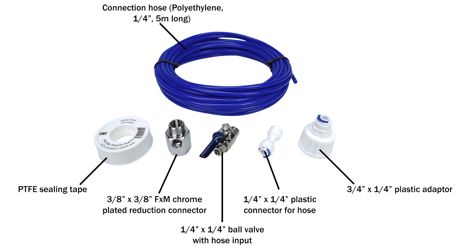 - 5m long connection hose made from polyethylene (1/4" Inch BSP);