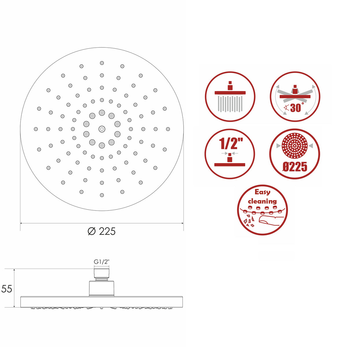 Round Rainfall COMA Chrome Movable Spare Replacement Part Shower Column 225mm