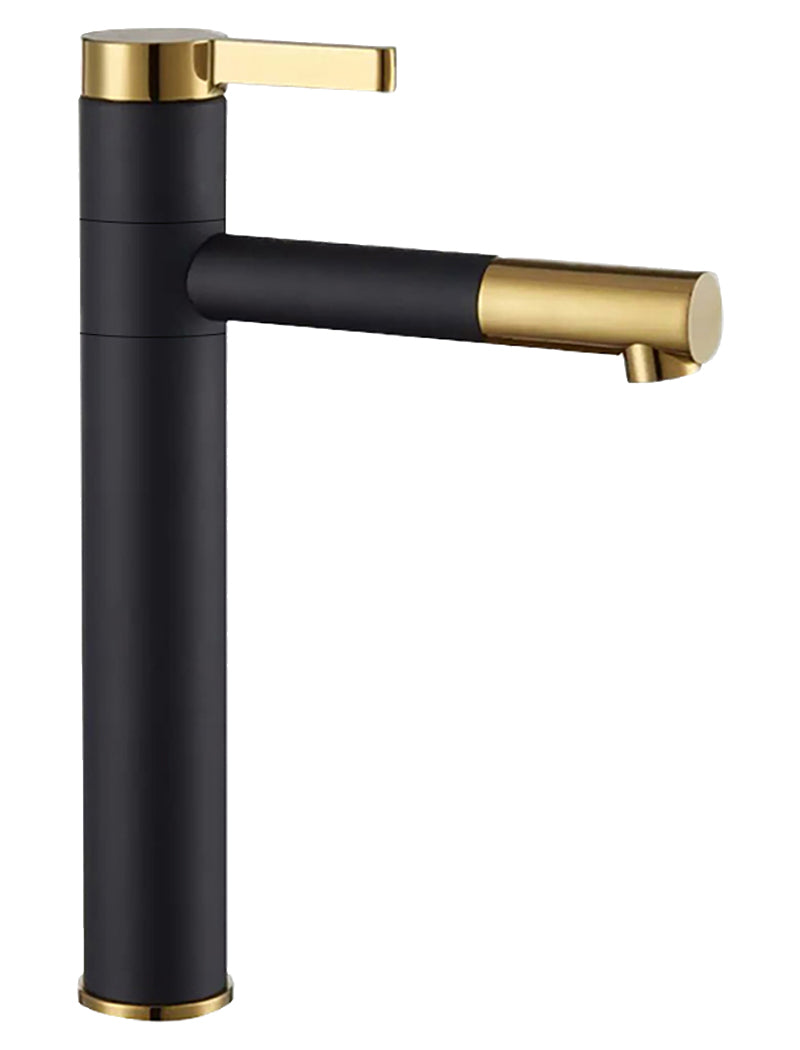 Tall Basin Tap Black/Gold Colour Finished Brass Bathroom Standing Faucet Mixer