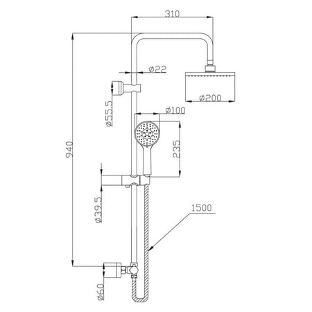 A modern shower column set with a thermostatic shower mixer valve bar ensuring showering comfort at constant temperature. The rainfall shower and thermostatic mixer equipment ensures a long service life. Set is equipped with shower diverter built into the thermostatic bar, sliding head holder, 3-function handheld shower head, 1.5 metre shower hose and 20cm rainfall top shower.