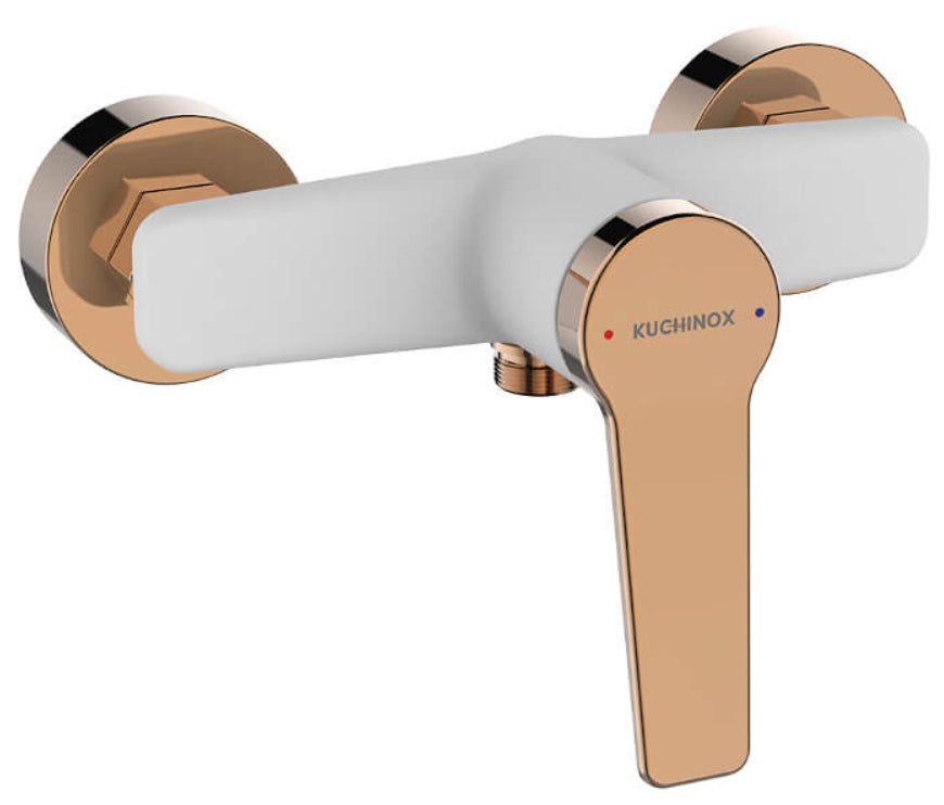 White/Rose Gold Finishing Shower Tap Wall Mounted Mixer Single Lever